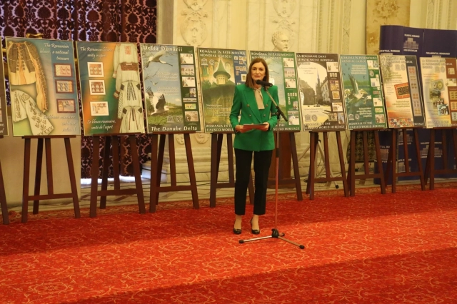 România într-o imagine, aşa ar putea fi definit timbrul, iar dacă Romfilatelia a fost prezentă astăzi la Palatul Parlamentului, Camera Deputaţilor, pentru a marca împlinirea a 50 de ani de la semnarea de către ţara noastră a Convenţiei privind protecţia patrimoniului mondial, cultural şi natural cu panouri filatelice reprezentative, dovedeşte că ţara îşi transferă mesajele în spaţiul public naţional şi internaţional prin intermediul mărcii poştale.