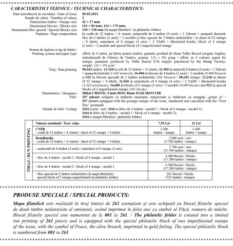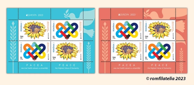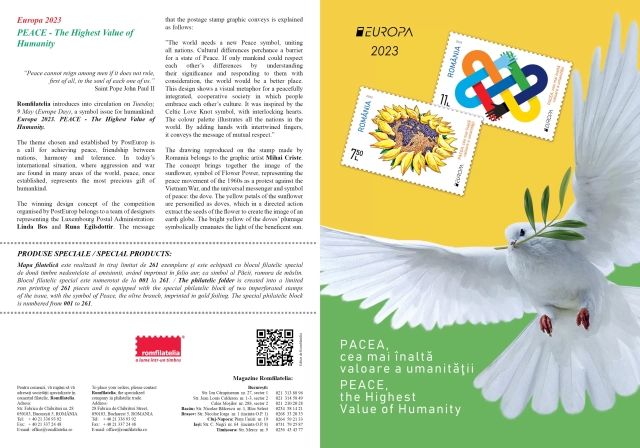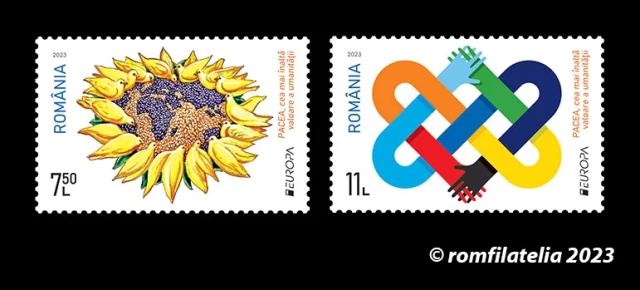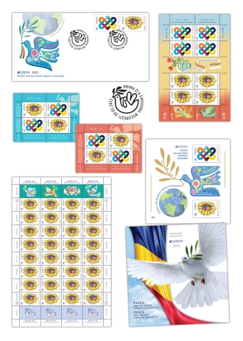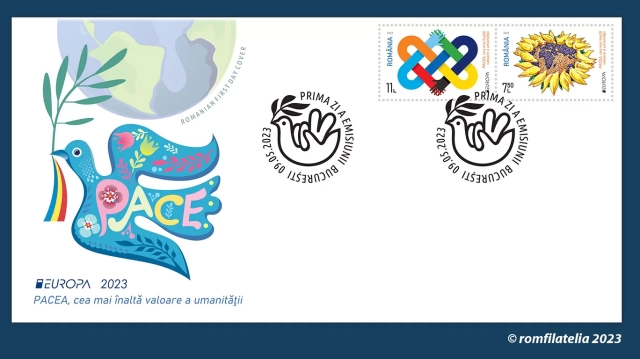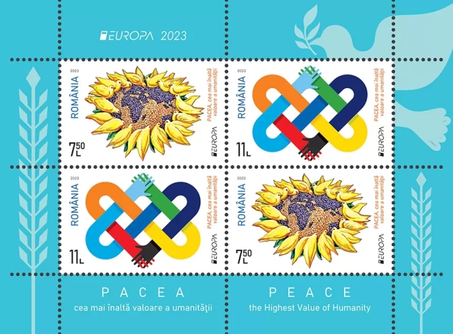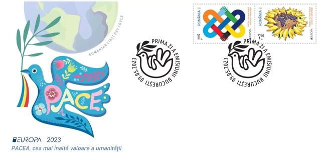 Romfilatelia introduce în circulație marți, 9 mai, (Ziua Europei), o emisiune simbol pentru omenire: EUROPA 2023, PACEA cea mai înaltă valoare a umanității.