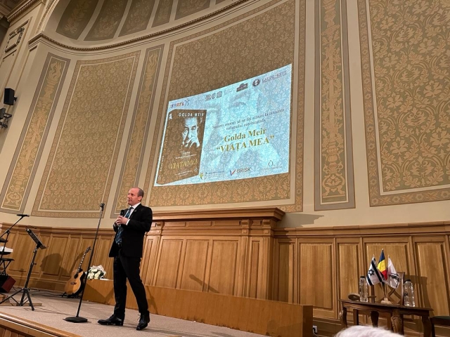 Evenimentul a fost organizat de Ambasada Statului Israel în România, împreună cu Fundația Magna cum Laude-Reut și Complexul Educational Laude-Reut, duminică, 24 septembrie a.c. în Aula Bibliotecii Universitare “Carol I” , în cadrul Străzii de C’arte, la care au participat invitați din domeniul academic, politologi, studenți, personalități ale vieții culturale, iar momentul artistic a fost susținut de Paul Surugiu-Fuego.