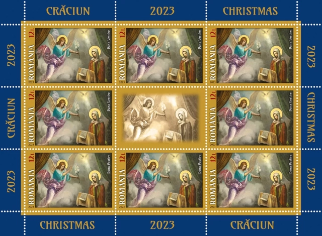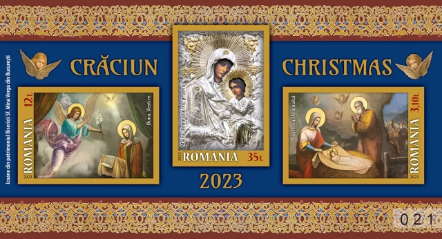 Imaginile reproduse pe mărcile poștale ale emisiunii „Crăciun 2023”, aparțin unor icoane din patrimoniul Bisericii „Sfântul Mina Vergu” din București, zidită în anul 1725 de către boierul Vergu și Ancuța Doamna.