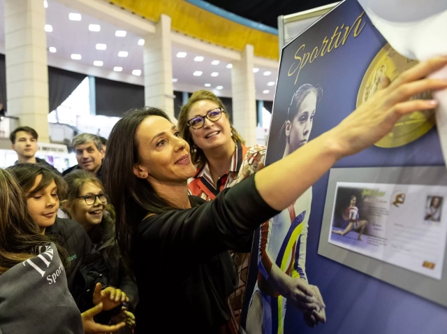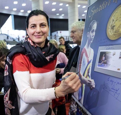 24 Noiembrie 2023 Andreea Răducan la Târgul Gaudeamus Vineri, 24 Noiembrie în prezența unui public numeros, familie, alături de prieteni sportivi și admiratori, copii dornici să o cunoască, Andreea Răducan s-a bucurat cu multă emoție de lansarea produsului filatelic cu timbru dedicat carierei și personalității. Medaliata cu aur în finala pe echipe la Jocurile Olimpice de la Sydney 2000, campioana olimpică și mondială la gimnastica artistică, Andreea transmite cu multă dragoste și sinceritate un îndemn pentru viitorul tinerei generații de sportivi , ,Îmbrățișează cu încredere și mult curaj provocările care vin spre tine. Doar așa vei ști cât ești de puternic, Clasorul de timbre care îi amintește de pasiunea pe care a împărtășit-o încă din anii de scoală și pe care l-a prezentat cu multă încântare, i-a amintit Andreei de puterea vizuală de a imagina și de a spune în imagini povești despre copilărie prin marca poștală. Romfilatelia își va continua parcursul de a emite și a completa patrimoniul filatelic românesc cu emisiuni de timbre care vor promova valorile naționale și tezaurul uman viu al României. Mulțumim, Gaudeamus și colaboratorilor ! #COSR #filatelie #pasiune #sportivideaur #agentianationalapentrusport #colectii #stand226Gaudeamus #culturaprintimbre #educatie #performanta