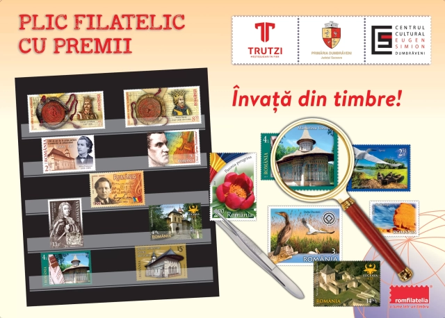 În acest context, elevii şcolii din comuna Dumbrăveni, judeţul Suceava, participanţi la concursul “Învață prin timbre!”, organizat de Primăria comunei, au primit plicuri filatelice conţinând mărci poştale, coliţe şi plicuri “prima zi”, fiind desemnaţi câştigători cei care au prezentat colițele nedantelate numerotate, menționate în regulamentul concursului.