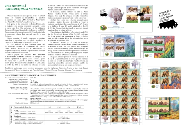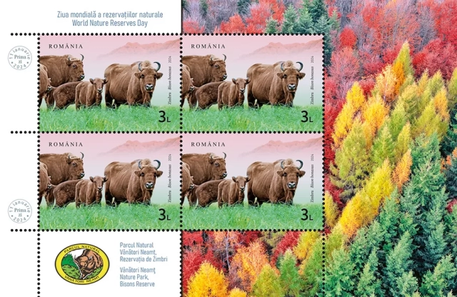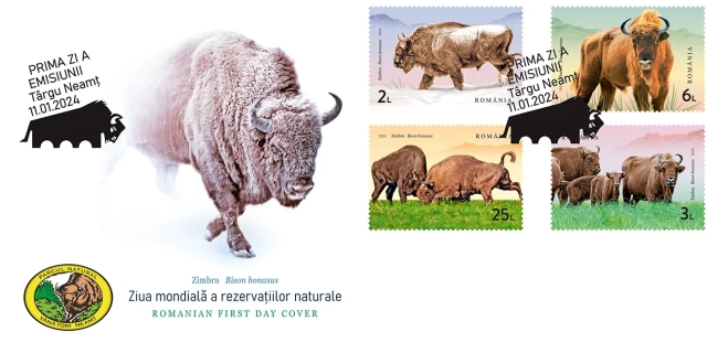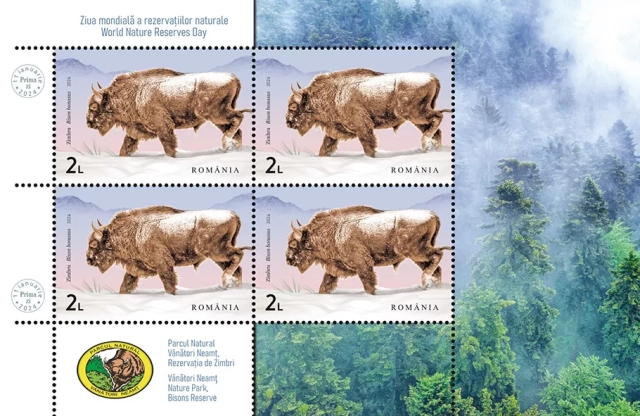 Mărcile poștale ale emisiunii Ziua mondială a rezervațiilor naturale ilustrează în imaginile lor zimbrul aparținător al speciei Bison bonasus, care se găsește în Europa. Zimbrul este cel mai mare mamifer terestru din Europa, odinioară prezent pe tot continentul cu excepția Spaniei, Italiei și nordului Scandinaviei.