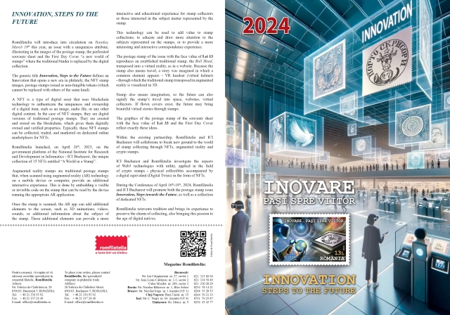 Titlul generic Inovare, pași spre viitor definește o Inovare care deschide o nouă epocă în filatelie, imaginile timbrelor NFT, timbre poștale emise sub formă de tokenuri (jetoane simbol) non-fungibile (care nu pot fi înlocuite cu altele de același fel).
