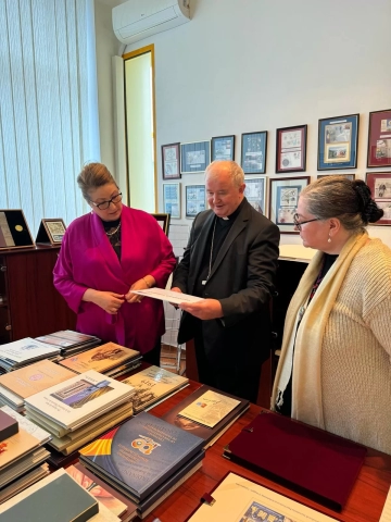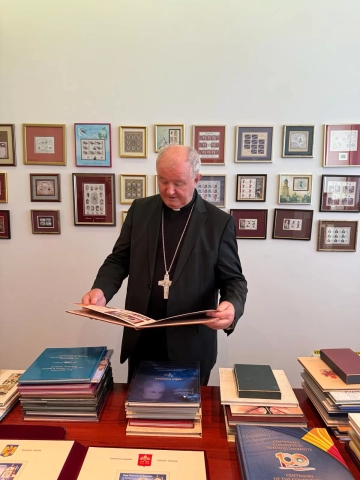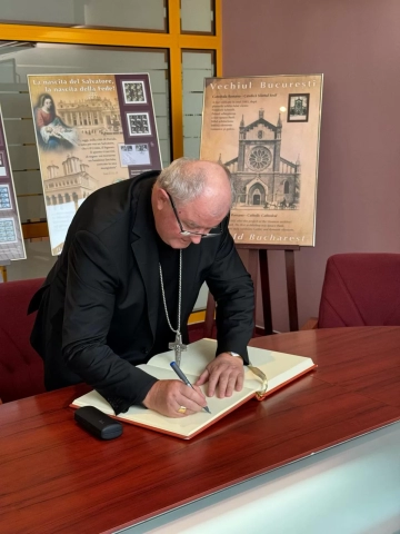 Vizita a avut loc în contextul împlinirii în acest an a 25 de ani de la vizita Papei Ioan Paul al II-lea în România, cu acest prilej fiind realizată o retrospectivă a emisiunilor filatelice pe care Romfilatelia le-a dedicat fostului Suveran Pontif.