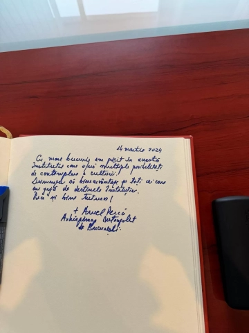 Totodată, Monseniorul a avut amabilitatea de a adăuga câteva cuvinte în cartea de onoare a societăţii:
