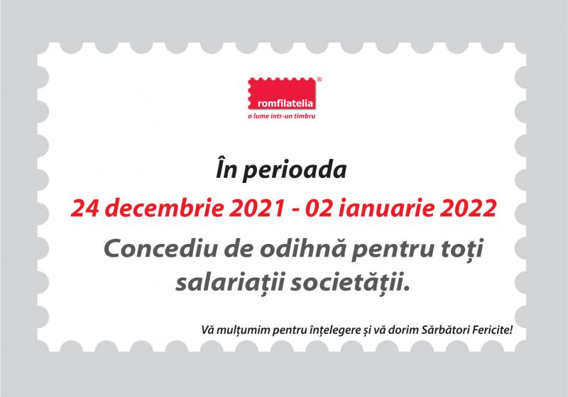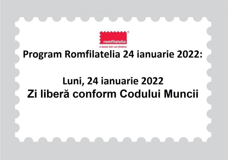 Program Romfilatelia 24 Decebrie 2021 – 02 Ianuarie 2022