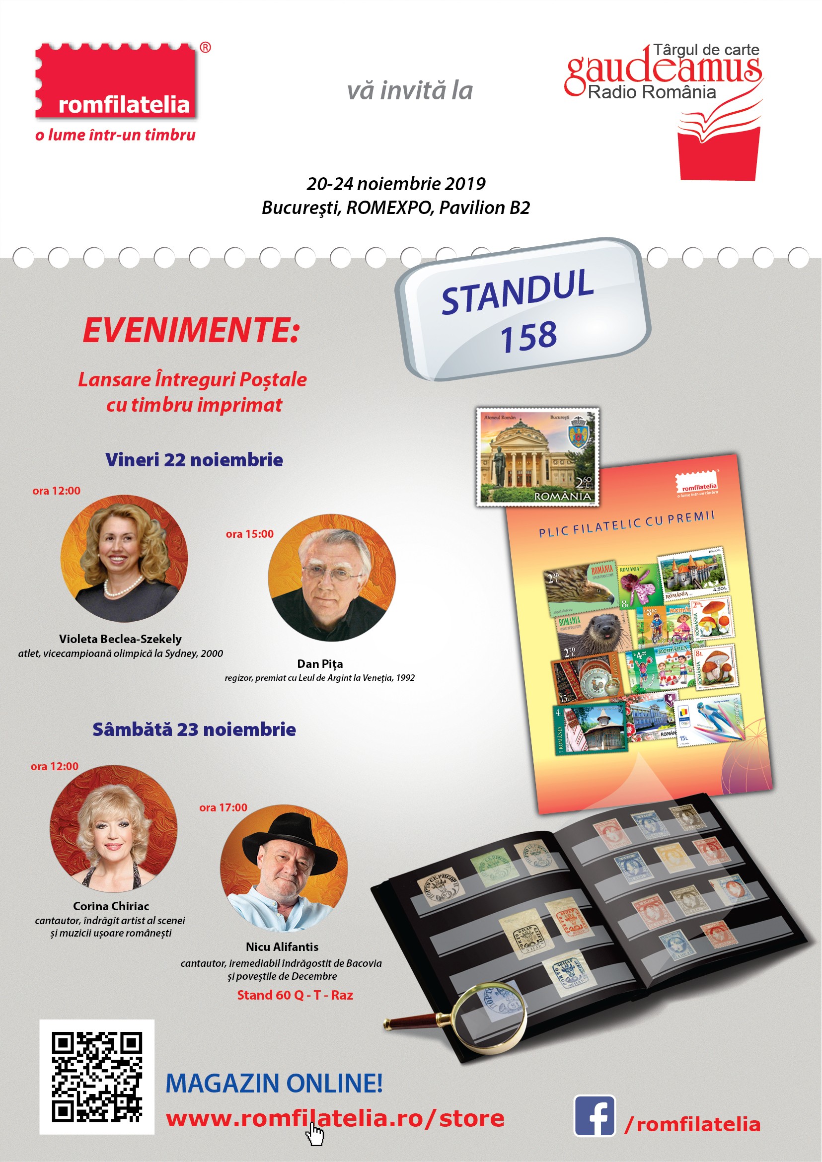 În perioada 20 – 24 noiembrie , Romfilatelia vă așteaptă cu părinți, copii, bunici la ediţia cu numărul 26 a Târgului GAUDEAMUS Radio România care va avea loc în Pavilionul B2 al Complexului Expoziţional Romexpo. Pe noi ne găsiți la standul 158. Nu uitați să aduceți cu voi bucuria de a descoperi o lume într-un