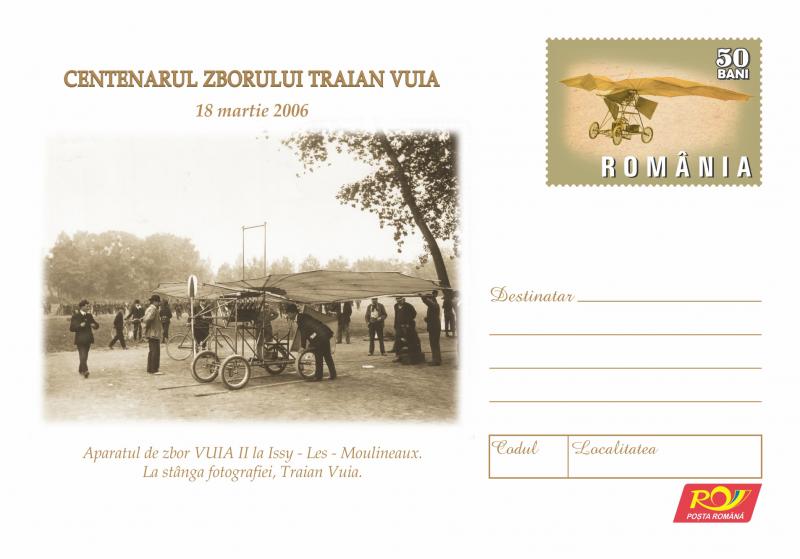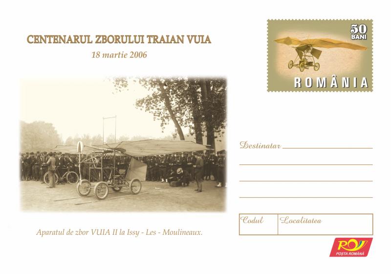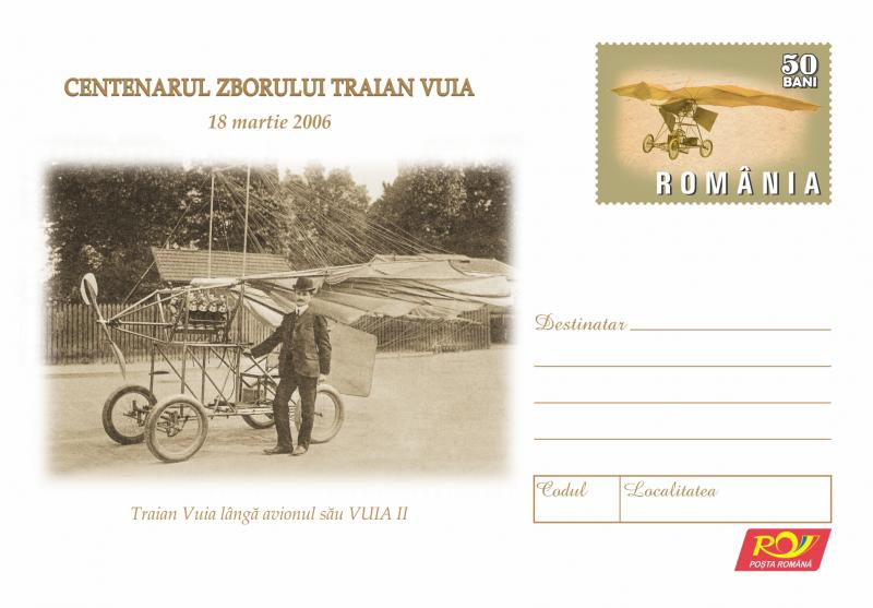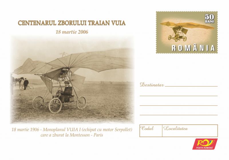 Centenarul Zborului Traian Vuia 18 martie 2006. 18 martie 1906 – Monoplanul VUIA I (echipat cu motor Serpollet) care a zburat la Montesson -Paris