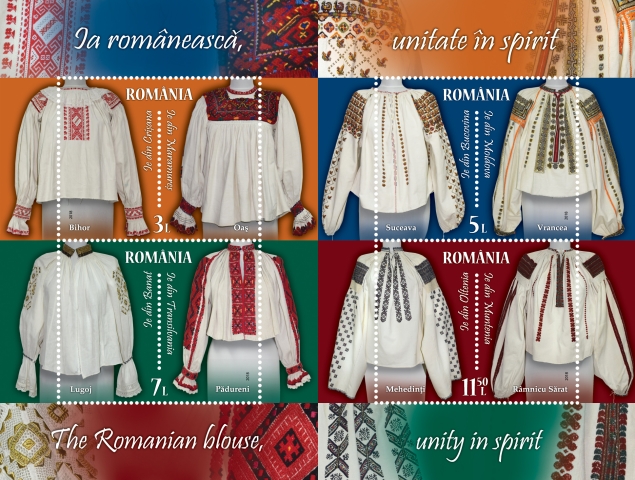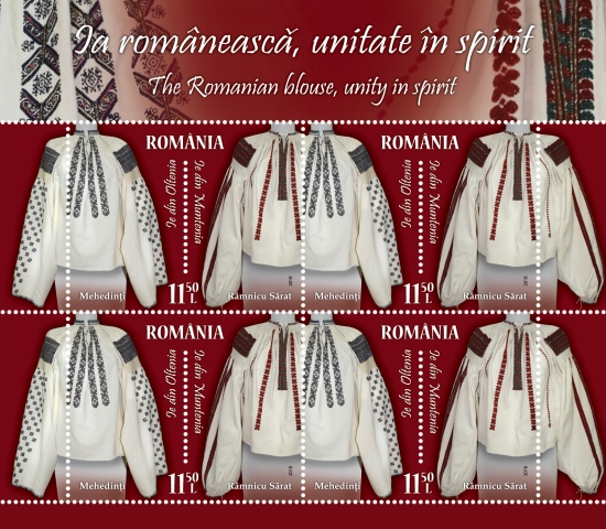 In the Centenary year of the 1918 Great Union, Romfilatelia introduces into circulation the postage stamp issue The Romanian Blouse, unity in spirit, dedicated to the most important piece of the traditional Romanian female costume, anticipating the day of June 24th, declared in 2013 as The Universal Day of the Romanian Blouse.