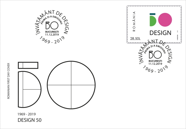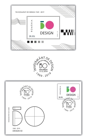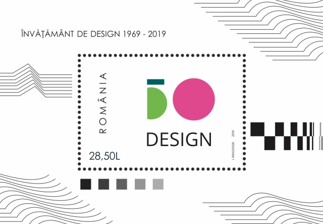 Romfilatelia introduce în circulație miercuri, 11 decembrie a.c., emisiunea de mărci poștale Design 50, pentru a marca jubileul înființării sistemului de învățământ superior de design în România.