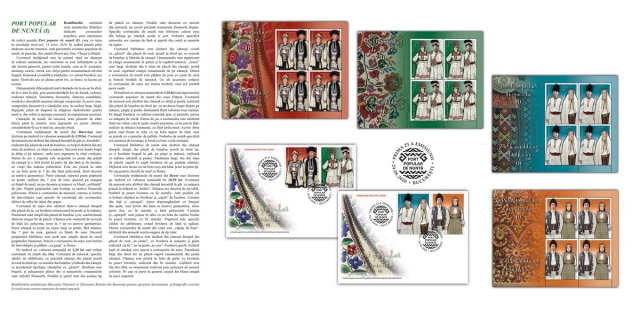 The postage stamps issue “Folk wedding clothing (I)” will be available on Wednesday, June 24th 2020, in Romfilatelia’s shops network in Bucharest, Bacau, Brasov, Cluj-Napoca, Iasi and Timisoara and online on http://romfilatelia.ro/store/. The postage stamps issue is completed by two “first day” covers, sheet of 20 stamps and minisheet of 4 stamps with illustrated border