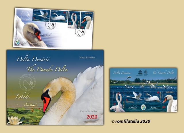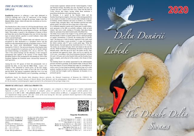 Romfilatelia proposes to collectors a new topic dedicated to UNESCO Heritage and to the 30th anniversary of the Danube Delta Biosphere Reserve, through the postage stamps issue “The Danube Delta. Swans”, which will enter into circulation on Tuesday, September 1st, 2020.