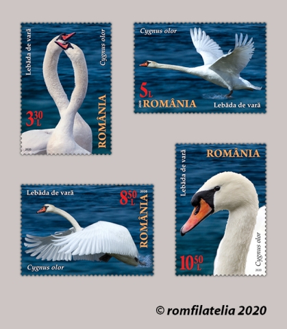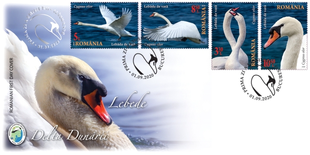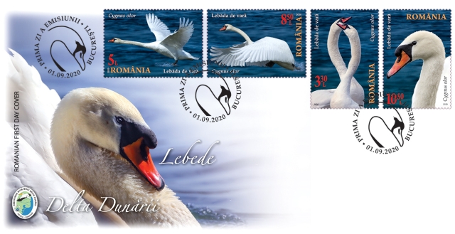 The postage stamps issue “The Danube Delta. Swans” will be available on Tuesday, September 1st 2020, in Romfilatelia’s shops network in Bucharest, Bacau, Brasov, Cluj-Napoca, Iasi and Timisoara and online on http://romfilatelia.ro/store/. The postage stamps issue is completed by the First Day Cover, in sheet of 32 stamps, minisheet of 4 stamps with illustrated border and block of 4 imperforated stamps.
