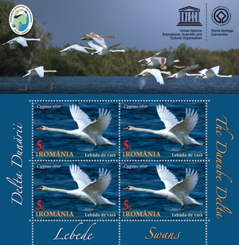 Romfilatelia thanks the Danube Delta Biosphere Reserve Authority, the National Commission of Romania for UNESCO, the “Grigore Antipa” National Museum of Natural History from Bucharest and the photographers Silviu Matei and Alexandru Orbescu for the documentary and photographic support granted to the achievement of this postage stamps issue.