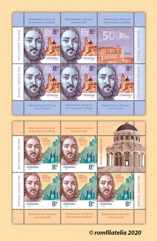 The postage stamps issue “Raphael Sanzio, 500 years since his death” will be available on Wednesday, September 9th 2020, in Romfilatelia’s shops network in Bucharest, Bacau, Brasov, Cluj-Napoca, Iasi and Timisoara and online on http://romfilatelia.ro/store/. The postage stamps issue is completed by the First Day Cover, in sheet of 28 stamps + tęte-bęche and 4 tabs (14 sets), minisheet of 5 stamps + 1 label and block of 4 stamps with illustrated border (2 sets).
