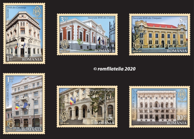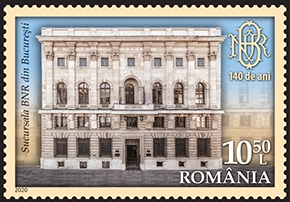 The building of the BNR Branch in Bucharest is shown on the last stamp of the series with the face value of Lei 10.50.