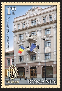 The building of the BNR Branch in Cluj is reproduced on the stamp with the face value of Lei 1.90.