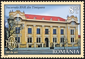 The postage stamp with the face value of Lei 8.50 reproduces the building of the BNR Branch in Timișoara.