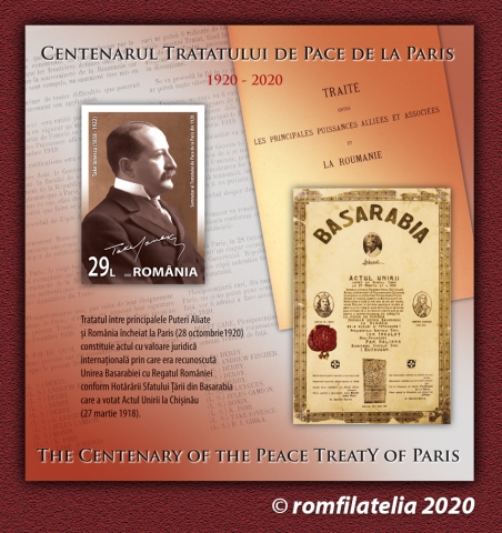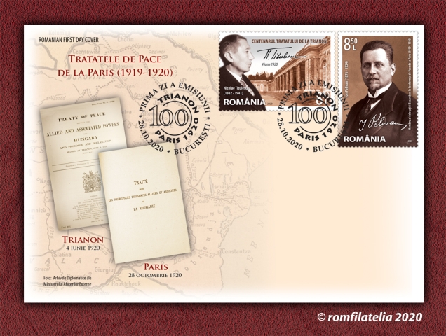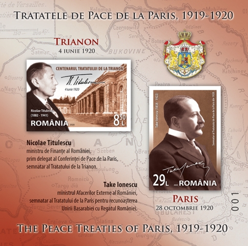 On the 100th anniversary of the signature of the Peace Treaties of Paris, on Wednesday, October 28, 2020, Romfilatelia introduces into circulation a postage stamps issue with the thematic title “The Peace Treaties of Paris, 1919–1920”.
