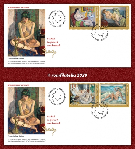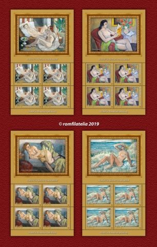 The postage stamps issue “Nudes in Romanian Painting” will be available on Wednesday, November 25th 2020, in Romfilatelia’s shops network in Bucharest, Bacau, Brasov, Cluj-Napoca, Iasi and Timisoara and online on http://romfilatelia.ro/store/. The postage stamps issue is completed by the two “first day” covers, in sheet of 20 stamps and minisheet of 4 stamps with illustrated border.