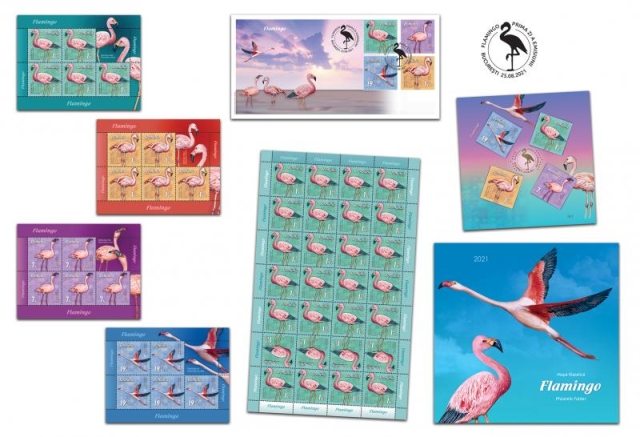 Emisiunea de mărci poștale Flamingo va fi disponibilă începând de miercuri, 25 august 2021, în magazinele Romfilatelia din București, Bacău, Brașov, Cluj-Napoca, Iași, Timișoara, precum și în magazinul nostru online: http://romfilatelia.ro/store/. Aceasta este completată de un plic „prima zi”, patru coli de 28 timbre, patru minicoli de 5 timbre cu vinietă și un bloc de 4 timbre nedatate în mapă filatelică.