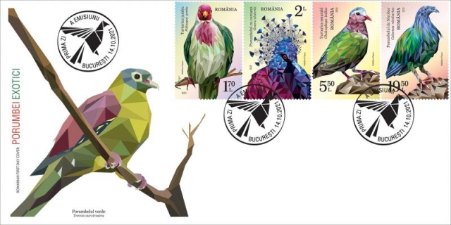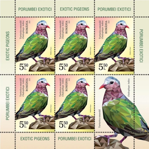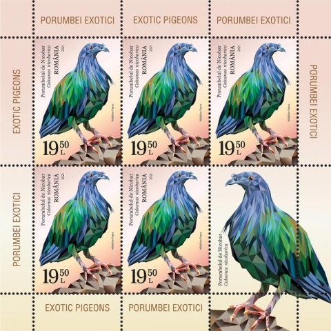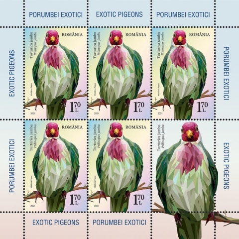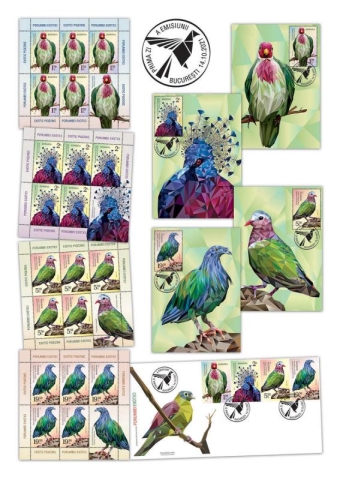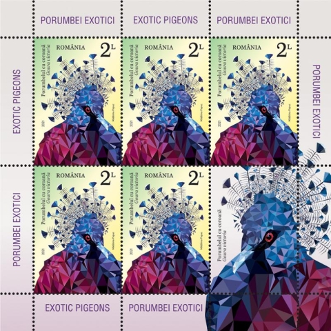 The postage stamps issue “Exotic pigeons will be available on Thursday, 14th Octomber 2021, in Romfilatelia’s shops network in Bucharest, Bacau, Brasov, Cluj-Napoca, Iasi and Timisoara and online on http://romfilatelia.ro/store/.