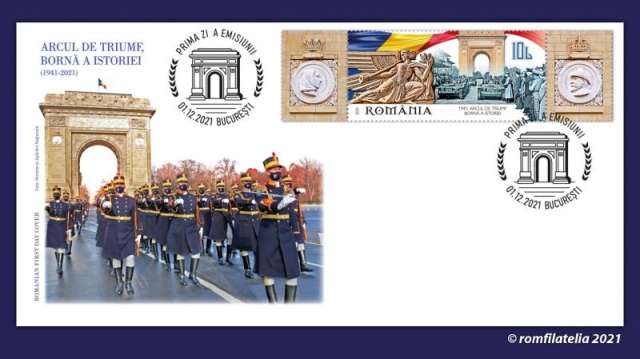 Thus, to celebrate the 80th anniversary of the first military parade, Romfilatelia, introduces into circulation, on December 1, 2021, the issue of postage stamps Arc de Triomphe, the landmark of history (1941-2021), in honor of the heroes who fell in battle for the liberation of Basarabia and the North of Bucovina.