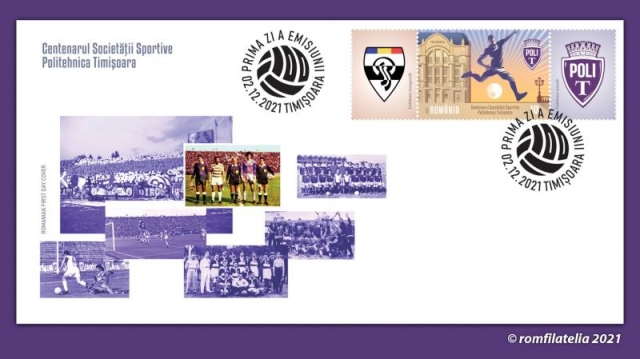 The postage stamps issue “Centenary of the Politehnica Timișoara Sports Society” will be available on Thursday, 02th of December 2021, in Romfilatelia’s shops network in Bucharest, Bacau, Brasov, Cluj-Napoca, Iasi and Timisoara and online on http://romfilatelia.ro/store/.