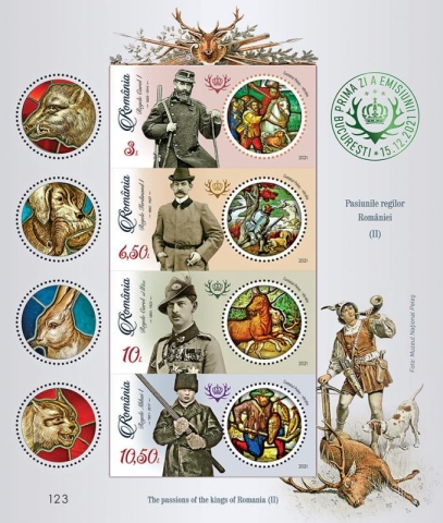 The postage stamps issue The Passions of the kings of Romania (II) will be available on Wednesday, 15th of December 2021, in Romfilatelia’s shops network in Bucharest, Bacau, Brasov, Cluj-Napoca, Iasi and Timisoara and online on http://romfilatelia.ro/store/.