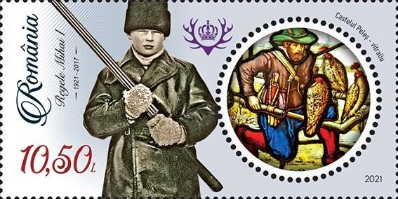 The stamps of the issue with the face values of Lei 3, Lei 6.50, Lei 10 and Lei 10.50, reproduce the portraits of the kings of Romania Carol I, Ferdinand I, Carol II and Michael I in appropriate attire to the hunting grounds next to symbolic scenes of the royal hunts found in the stained-glass suite of Peles Castle. It should be noted that King Michael I is represented as a child-hunter.