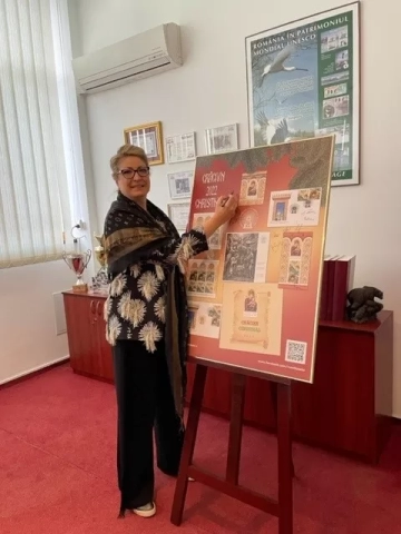 As host, Romfilatelia thanked all the guests for their support in creating this year’s issues of highly graphic postage stamps, appreciated by both collectors and the general public, proof of this recognition being the Gold Medal that our institution received in Cape Town, South Africa, at the World Stamp Exhibition held from the 8th to the 12th of November 2022. The medal was awarded by the international jury appointed by the Universal Postal Union (UPU) for the Romanian posatge stamps grouped under the title Personalities of the Universal Human Treasure.
