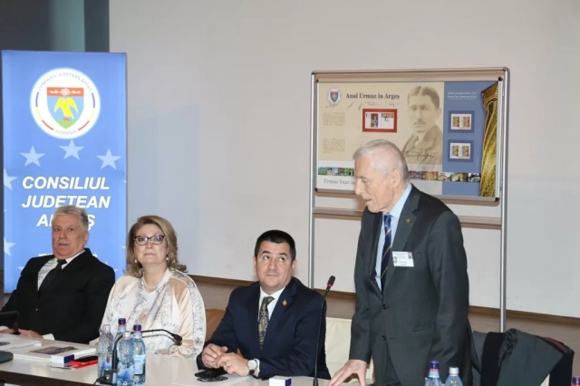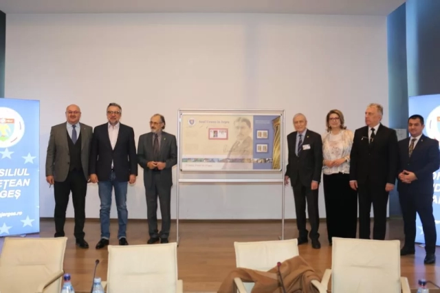 The host of the event, Mr. Academician Gheorghe Păun, an admirer of Urmuz and subjugated by all that is valuable, originally from Argeș, with great dedication and patience sustained and supported the philatelic project with photos and documentary material. Romfilatelia brings him a warm word of thanks and also thanks the President of the Argeș County Council for his interest in the Romanian postage stamp and its promotion.