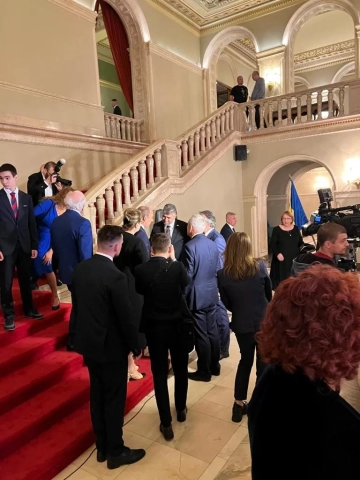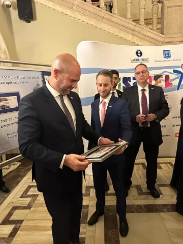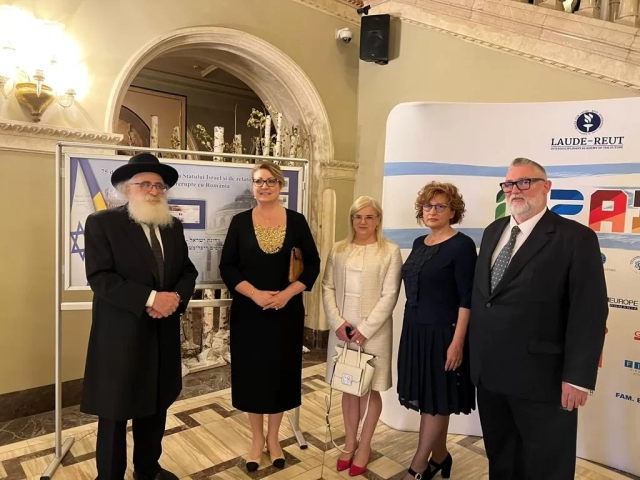 The event was particularly marked by the presence of H.E. Amir Ohana, President of the Knesset, Marcel Ciolacu, President of the Chamber of Deputies, Reuven Azar, Ambassador of the State of Israel, Silviu Vexler, President of the Federation of Jewish Communities in Romania, His Eminence Rafael Shaffer, Rabbi of the Rabbinical Chancellery of the Federation of Jewish Communities in Romania, members of the Romanian Parliament and Government, members of the cultural environment, friends of the Jewish people.