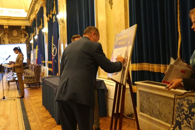 At the end of the speeches, the anniversary philatelic product was launched by State Secretary Eduard Bachide and Lieutenant General Corneliu Postu, as an invitation to remember the emblematic magazine of the Romanian Army.