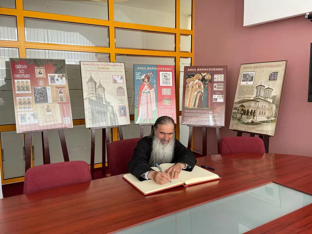 HIS EMINENCE TEODOSIE, ARCHBISHOP OF TOMIS, ON A VISIT TO ROMFILATELIA