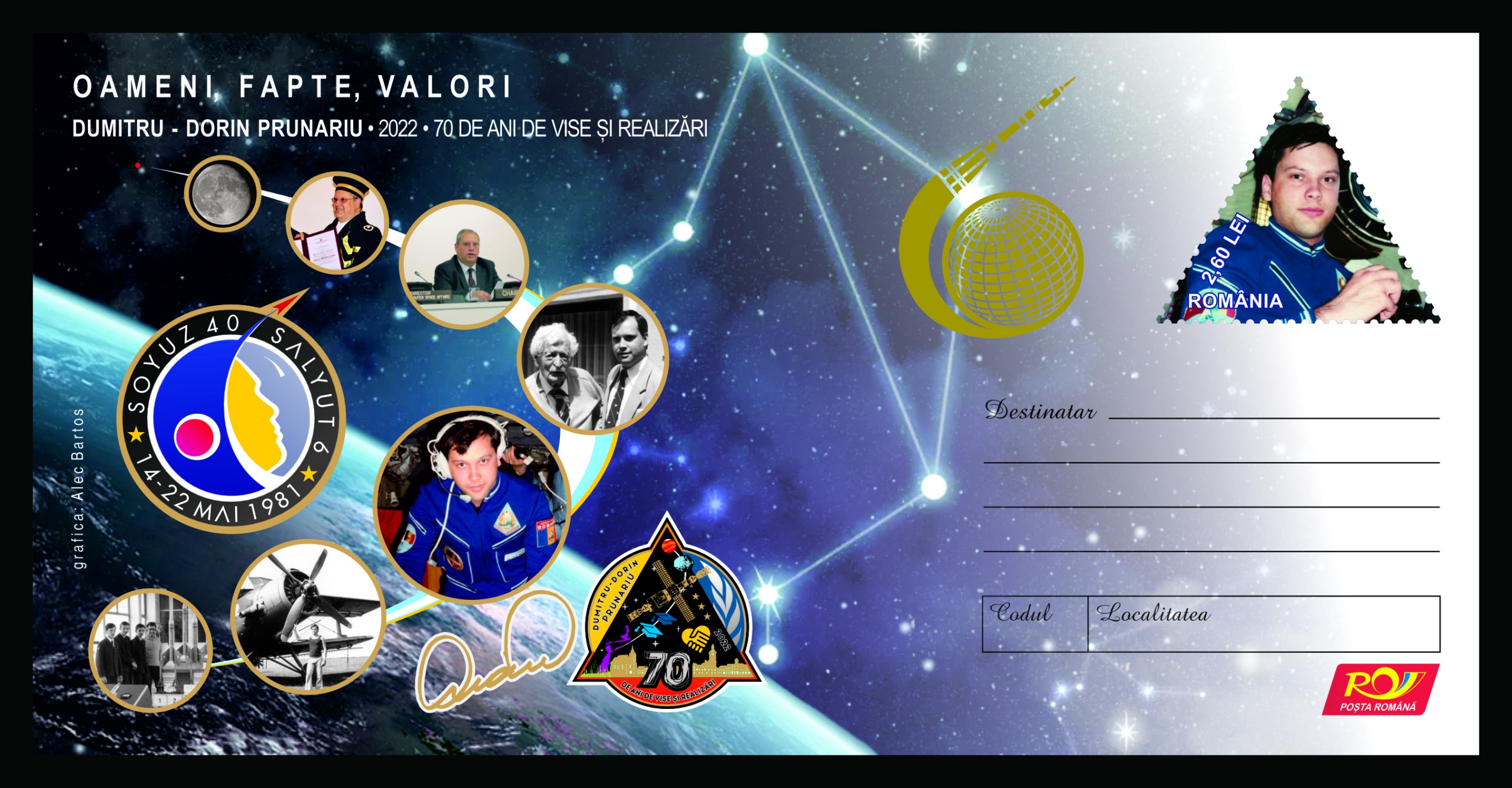 București, 27 septembrie 2022 Într-o atmosferă caldă, prietenoasă, marți, 27 septembrie, în prezența familiei, invitaților, reprezentanților Agenției Spațiale Române, ai domeniului științific, cultural, a fost sărbătorit Dumitru-Dorin Prunariu, cu ocazia aniversării a 70 de ani de viață. Romfilatelia, susținătoare continuă a proiectelor și inițiativelor promotoare de valori din domeniul culturii și al științei, s-a alăturat […]