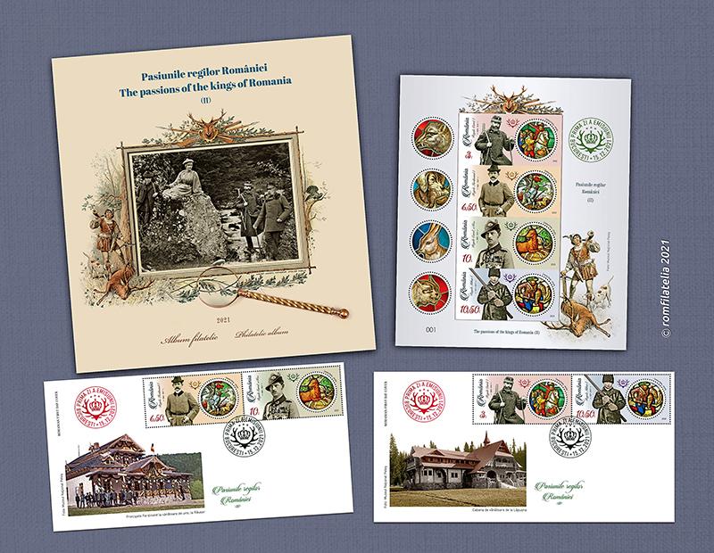 Albumul filatelic este realizat în tiraj limitat de 241 exemplare și este echipat cu blocul filatelic special de patru timbre nedantelate al emisiunii Pasiunile regilor României (II) cu vignete perforate care reproduc imagini ale vitraliilor Castelului Peleș cu tematica „Vânătoare” și un set de două plicuri „prima zi”. Setul de două plicuri „prima zi” și