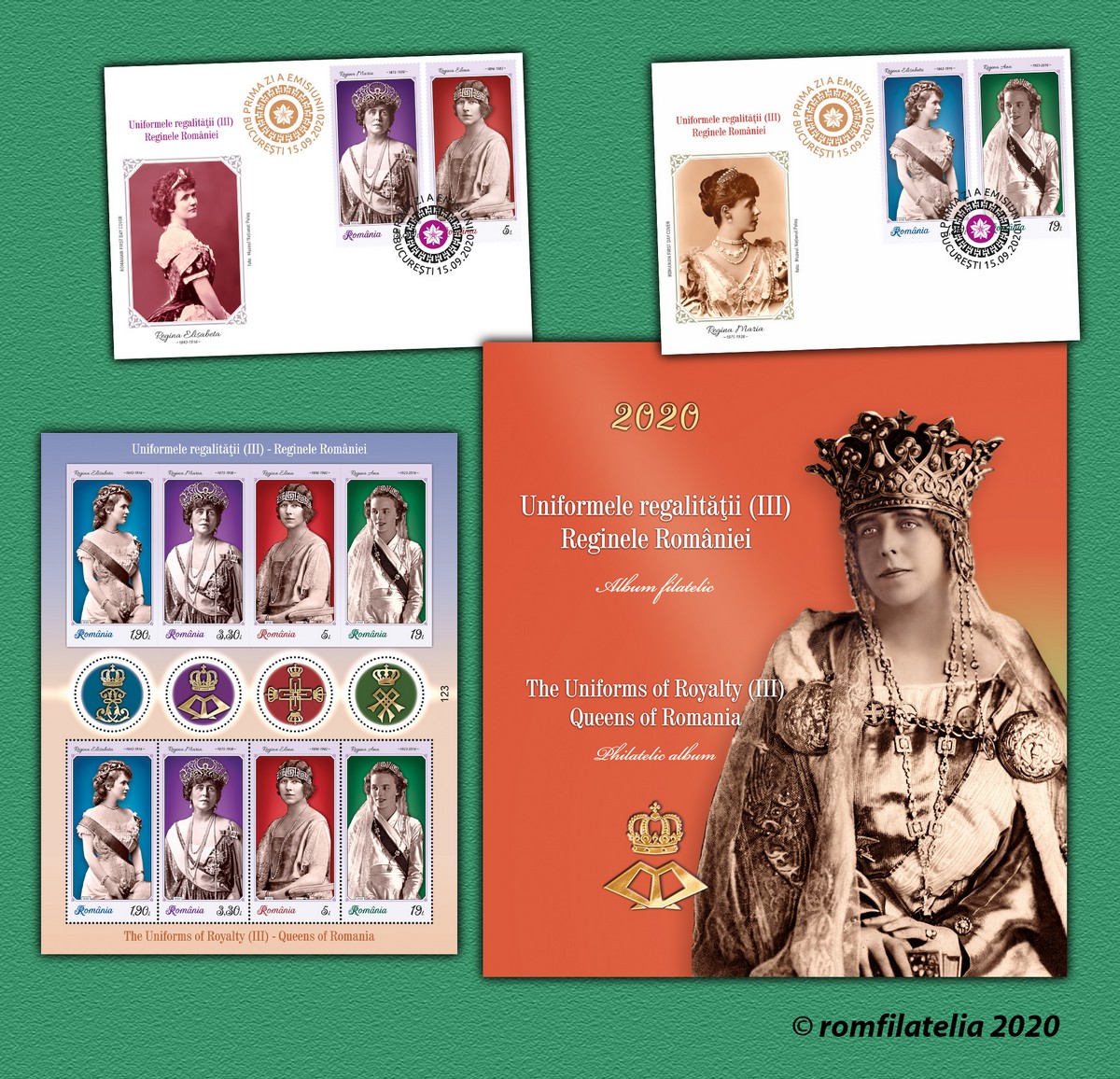 Albumul filatelic este realizat în tiraj limitat de 251 exemplare și este echipat cu un bloc special de 4 timbre dantelate + 4 viniete, al emisiunii, precum și setul de două plicuri „prima zi” având ștampila aplicată în clar cu folio aur. Ambele produse sunt numerotate de la 001 la 251.