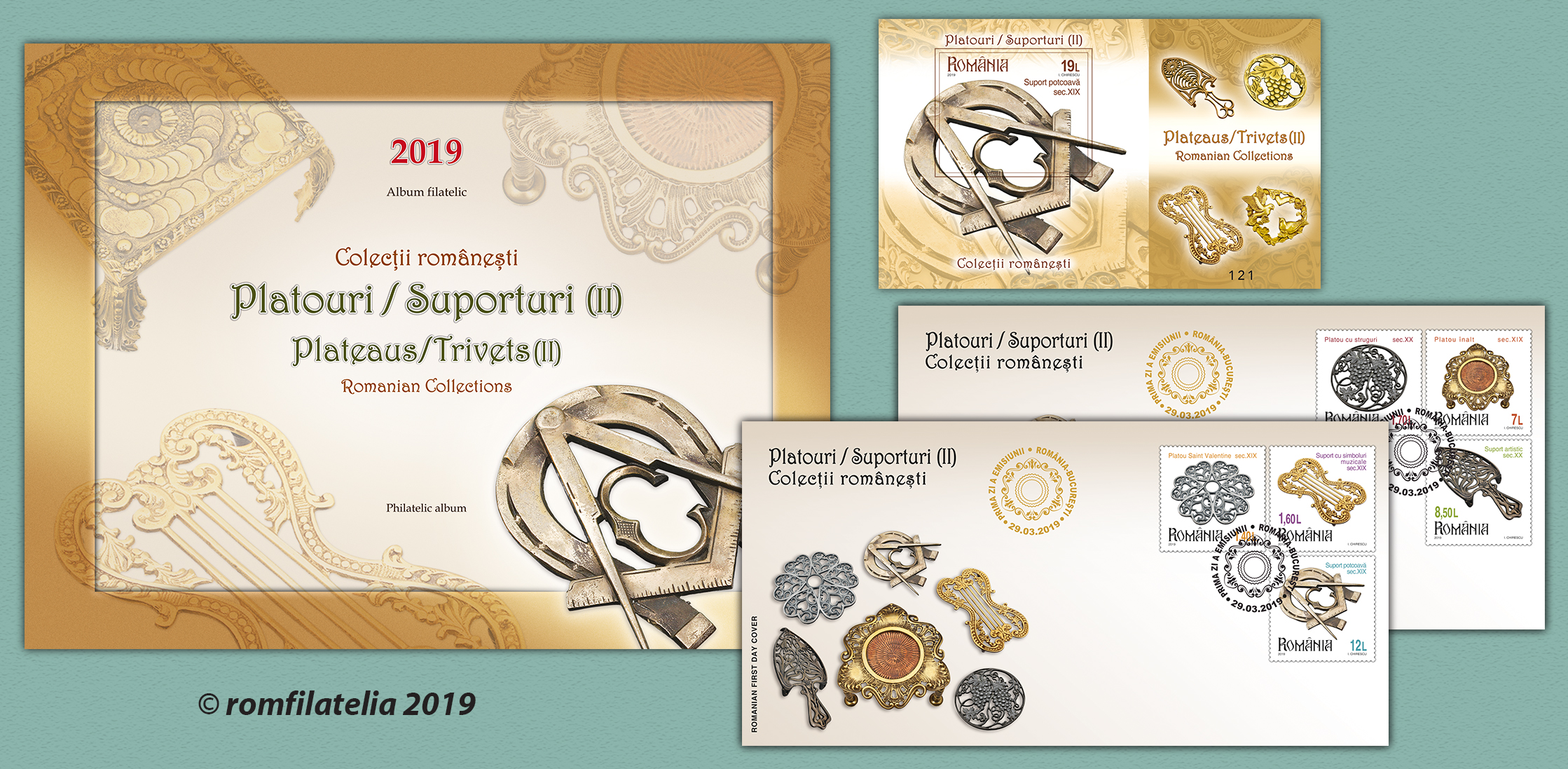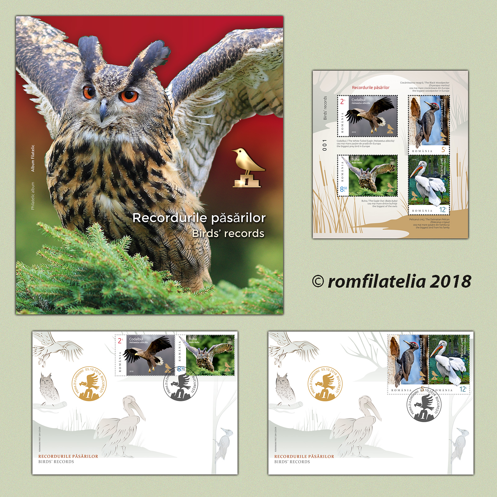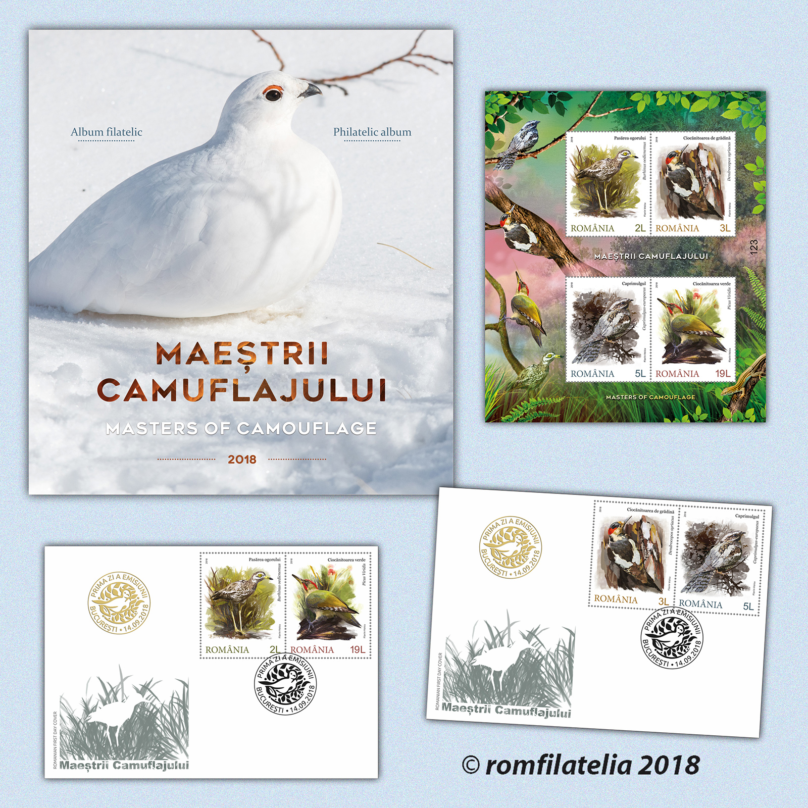 Albumul filatelic este realizat în tiraj limitat de 210 exemplare şi este echipat cu coliţa nedantelată a emisiunii, având ataşată o manşetă ilustrată cu texte reproduse în folio aur şi setul de două plicuri „prima zi”, având ştampila „prima zi” aplicată în clar, în folio aur. Fiecare produs filatelic inclus în acest album este numerotat […]